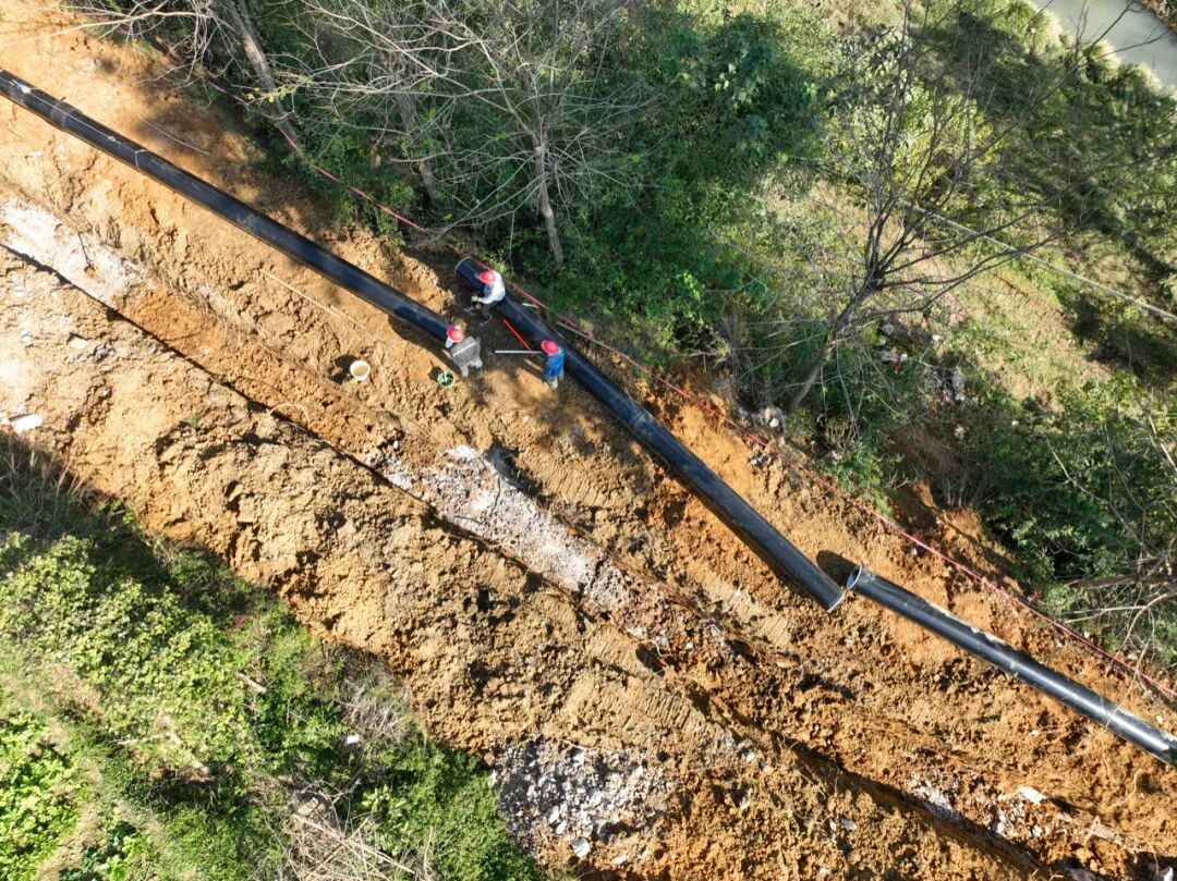 “在输水管道敷设过程中,我们严格按照施工要求进行,管道开挖深度根据地质不同在1米至1.5米之间调整,管道直径为DN450mm,采用钢丝骨架管。”贵州普华建设工程有限公司现场负责人赵刘山介绍,截至目前,项目已完成管道安装1.8公里,剩余7.3公里将抢抓有利天气加快施工进度。