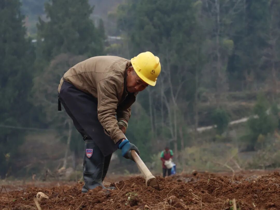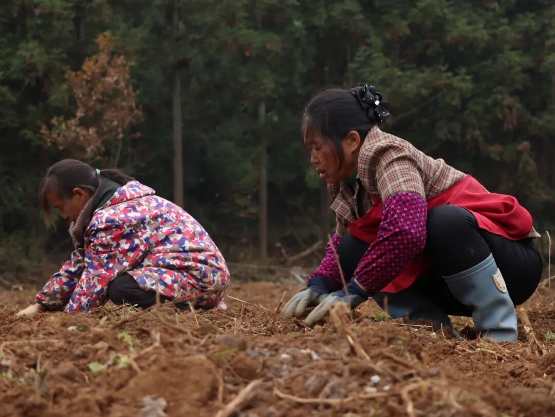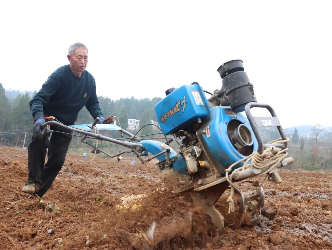 走进坪湾村中药材种植基地,翻土机来回作业,泥土的清香扑面而来。农户们分工协作,翻土、开沟、放苗、覆土,每一个步骤都一丝不苟、有条不紊。机器的轰鸣声与农户的欢声笑语交织在一起,打破了冬日乡村的宁静,构成了一曲生动的劳作乐章。