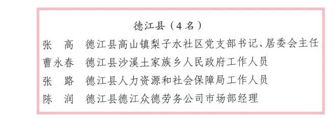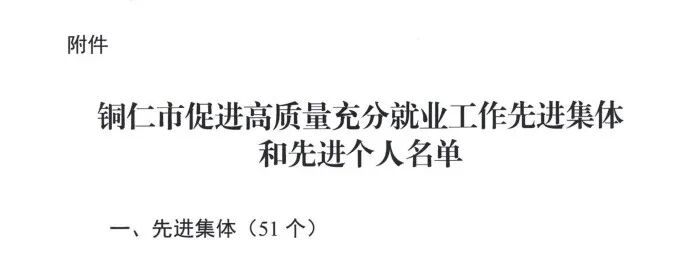 近日,中共铜仁市委、铜仁市人民政府表彰全市促进高质量充分就业工作先进集体和先进个人,德江县4个集体、14名个人光荣上榜。
