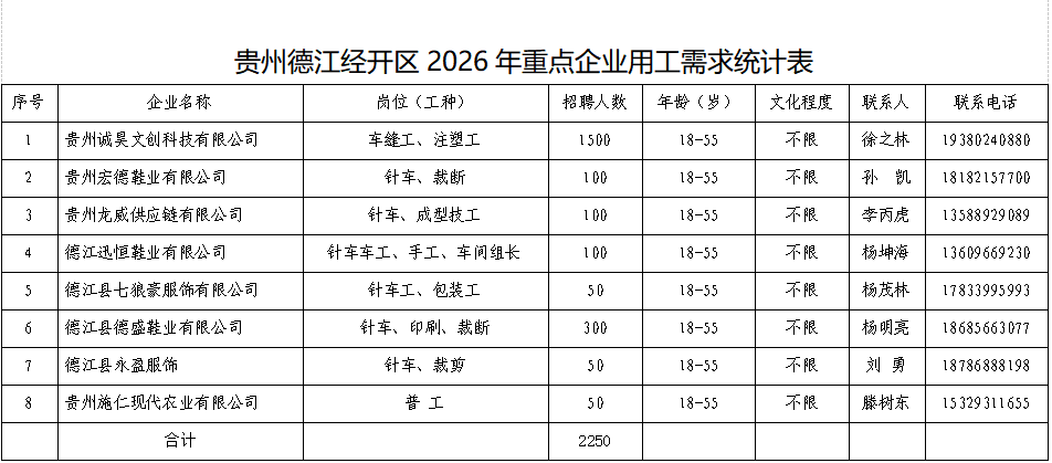 贵州德江经开区大批优质岗位