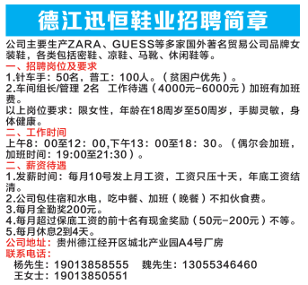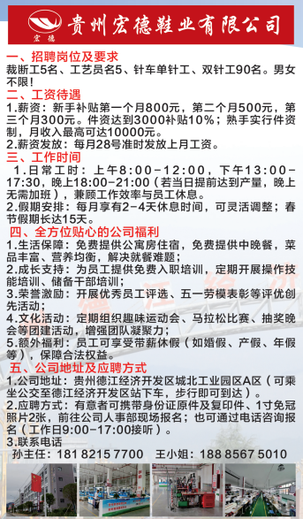德江经开区多家企业高薪招工啦!