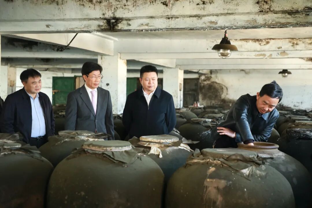 随后,徐再高主持召开座谈会,向企业职工宣讲全会精神,并听取企业经营发展情况汇报和部门交流发言。他指出,白酒产业是全省重要支柱产业,德江在发展白酒产业方面兼具政策优势、区位优势和产业基础,颐年春酒业作为德江“老字号”白酒企业,要抓住发展机遇,聚焦白酒主业,科学制定发展计划,早日实现复工复产,全力做大做强。要坚守品质生命线,传承传统酿造工艺,严格质量管控,加强产品设计与宣传营销,着力提升产品质量、维护品牌形象、保护生态环境。全县有关部门要强化要素保障,持续优化营商环境,围绕企业复工复产、加快发展所需的政策支持、要素配置和基础设施配套等提供系统性、精准化服务,切实为企业纾困解难。要加强规划引领,科学编制德江白酒产业发展规划,积极谋划项目,推动德江白酒产业高质量发展。