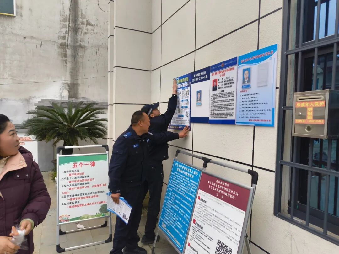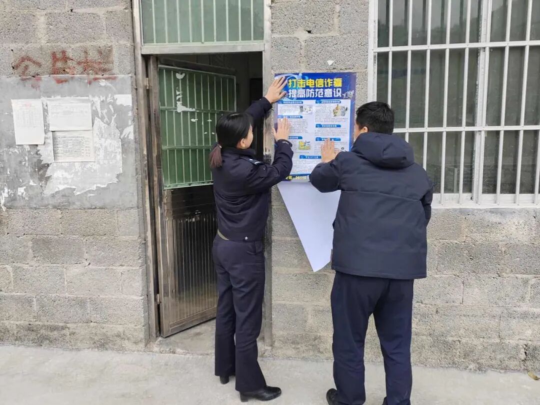 派出所根据辖区人员分布特点,聚焦村委会、社区、学校、银行周边等人员密集场所,逐一走访、逐点张贴反诈宣传海报。张贴过程中,民警同时向过往群众、商户讲解海报上的反诈知识。